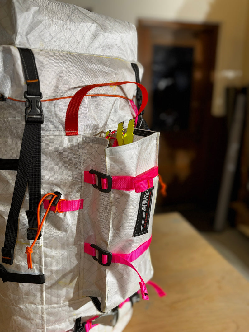 Every "base model" is just a place to start the conversation of what you need. We can talk over the phone, visit in the shop or meet up and go climbing. There are a lot of optionsfor designing a pack and we work through the list together. I like to have a conversation early in the process, just to get us both thinking about your pack and you are free to change things up until final payment and I start making your pack.